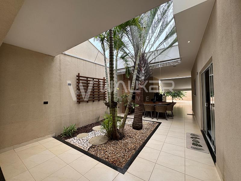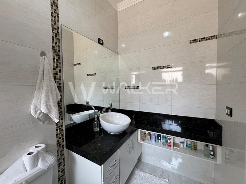 Na área íntima, três dormitórios cuidadosamente distribuídos, sendo duas suítes — uma delas com closet — garantem privacidade e bem-estar. A residência ainda conta com três banheiros, dois lavabos e quatro vagas de garagem, atendendo com excelência às necessidades da família.