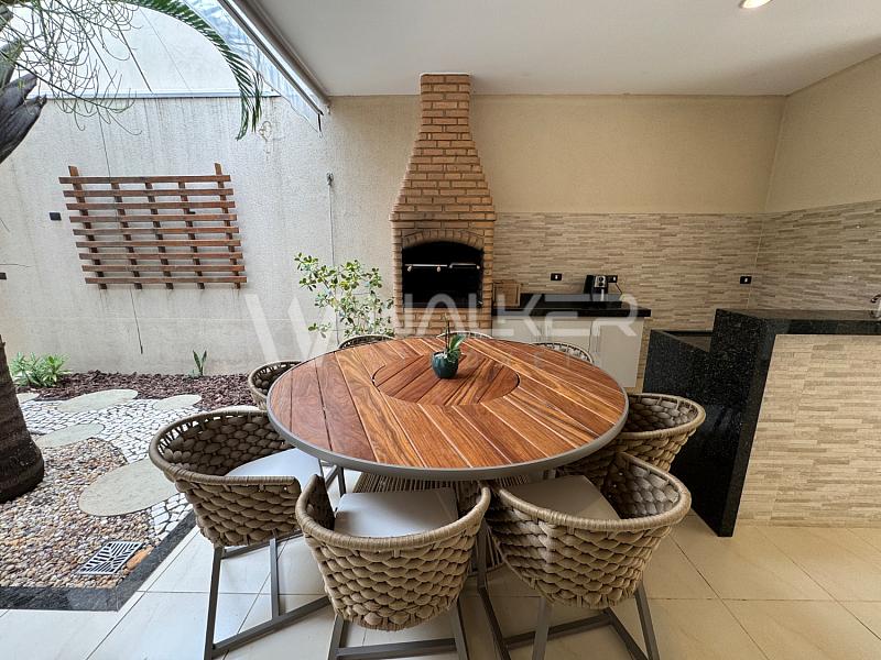 A cozinha planejada se integra ao espaço gourmet, formando o cenário ideal para receber com conforto e estilo. O jardim de inverno acrescenta luz natural e personalidade ao projeto, elevando a experiência dos ambientes internos.
